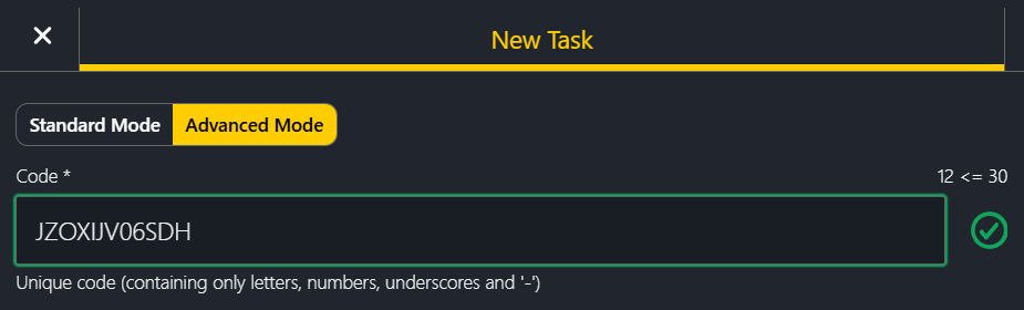 For most tasks, only mandatory and default settings are needed. To simplify task configuration, we've introduced Standard and Advanced modes. Standard mode hides most non-mandatory settings and advanced features such as concurrency thresholds, priority, and state configuration.